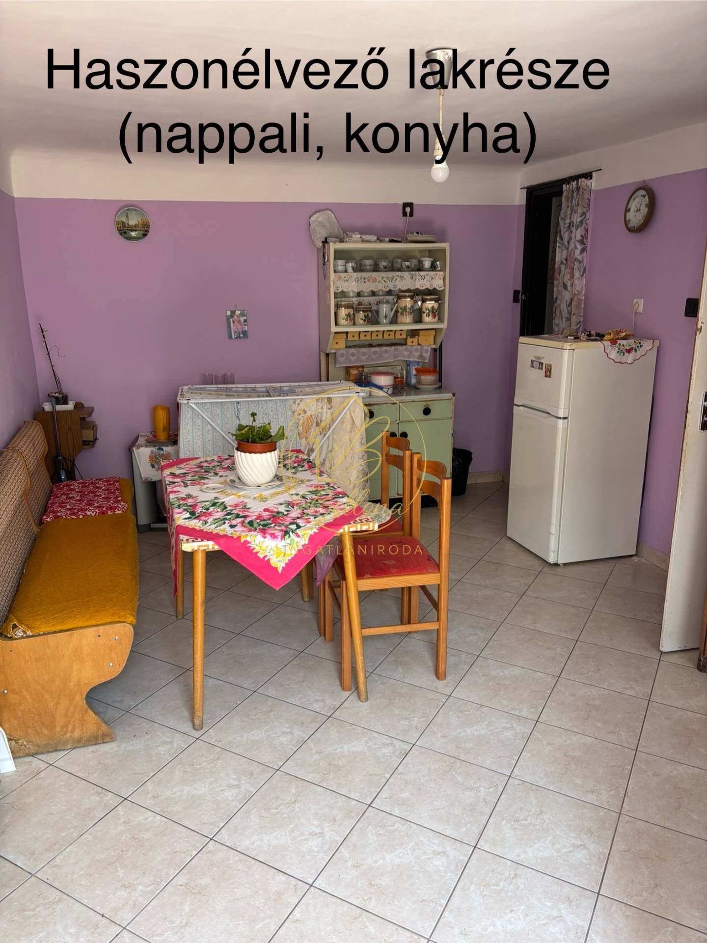 Az ingatlan két önálló lakrészből áll. A kisebbik lakrész jelenleg életvitelszerűen lakott, és ezen a részen bejegyzett, holtig tartó haszonélvezeti jog áll fenn. A tulajdonjog tekintetében az ingatlan 1/1 arányban tehermentes, így a vételár megfizetésével a vevő a teljes tulajdoni hányadot megszerzi. A haszonélvezeti jog nem képezi az adásvétel tárgyát, ennek ténye az ingatlan irányárában is tükröződik.