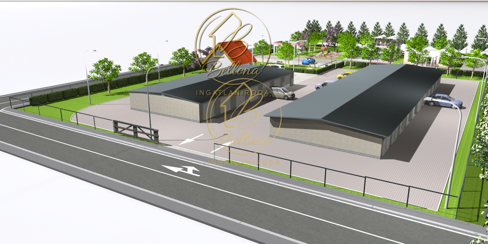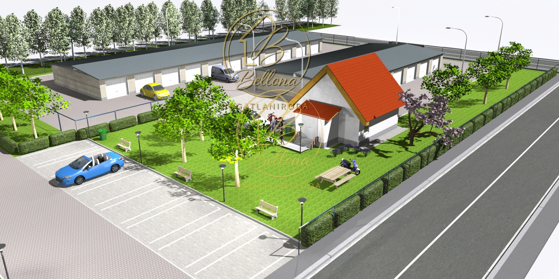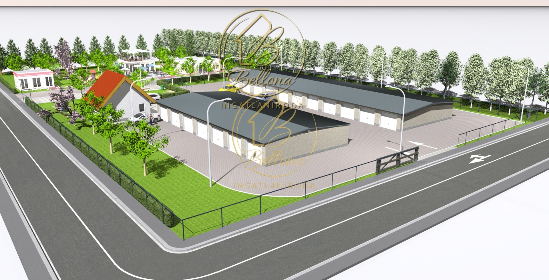 A beruházás keretében két különálló garázssor épül (22 + 14 db), melyek duplasoros kialakításúak, garázsonként előkerttel és közvetlen útcsatlakozással. A garázsok a város bármely pontjáról könnyen és biztonságosan megközelíthetőek – akár autóval, kerékpárral, vagy csupán néhány perces sétával. A parkosított, zöld környezet nemcsak esztétikus, hanem hozzájárul a kellemes és nyugodt városi életérzéshez.