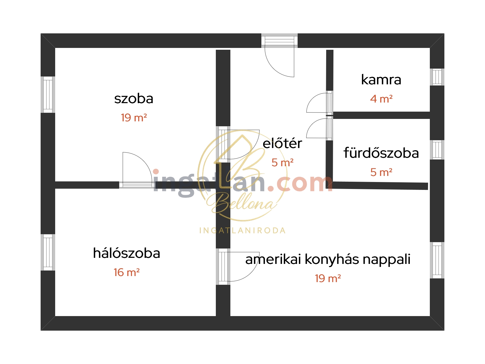· Kényelem és praktikusság: Beépített szekrények, sok pakolási lehetőség, külön kamra, és a szobák körbejárhatók.