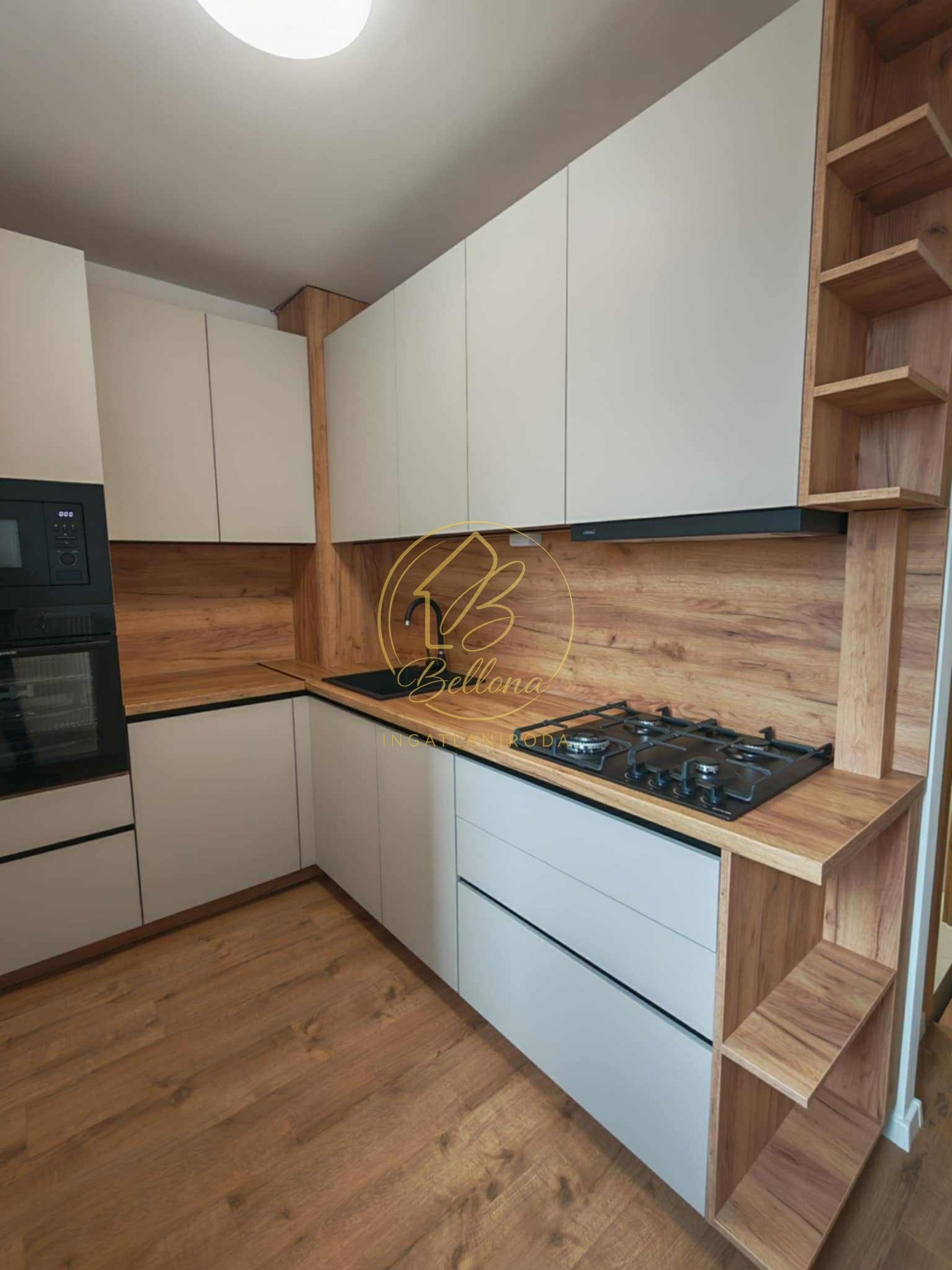 A modern konyha beépített sütővel, főzőlappal, mikróval, mosogatógéppel és mosógéppel felszerelt, így az új tulajdonosnak szinte semmire nincs gondja.