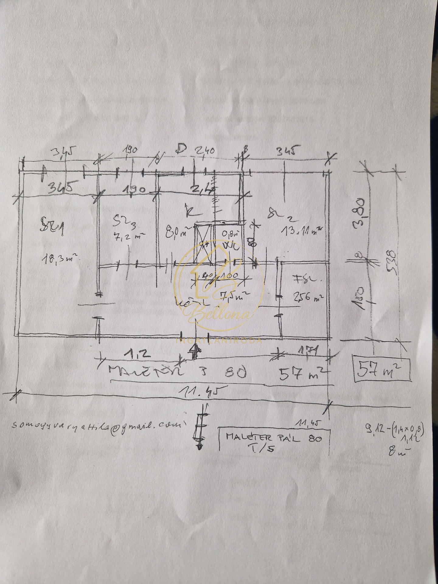 57 m², 2+1 félszoba